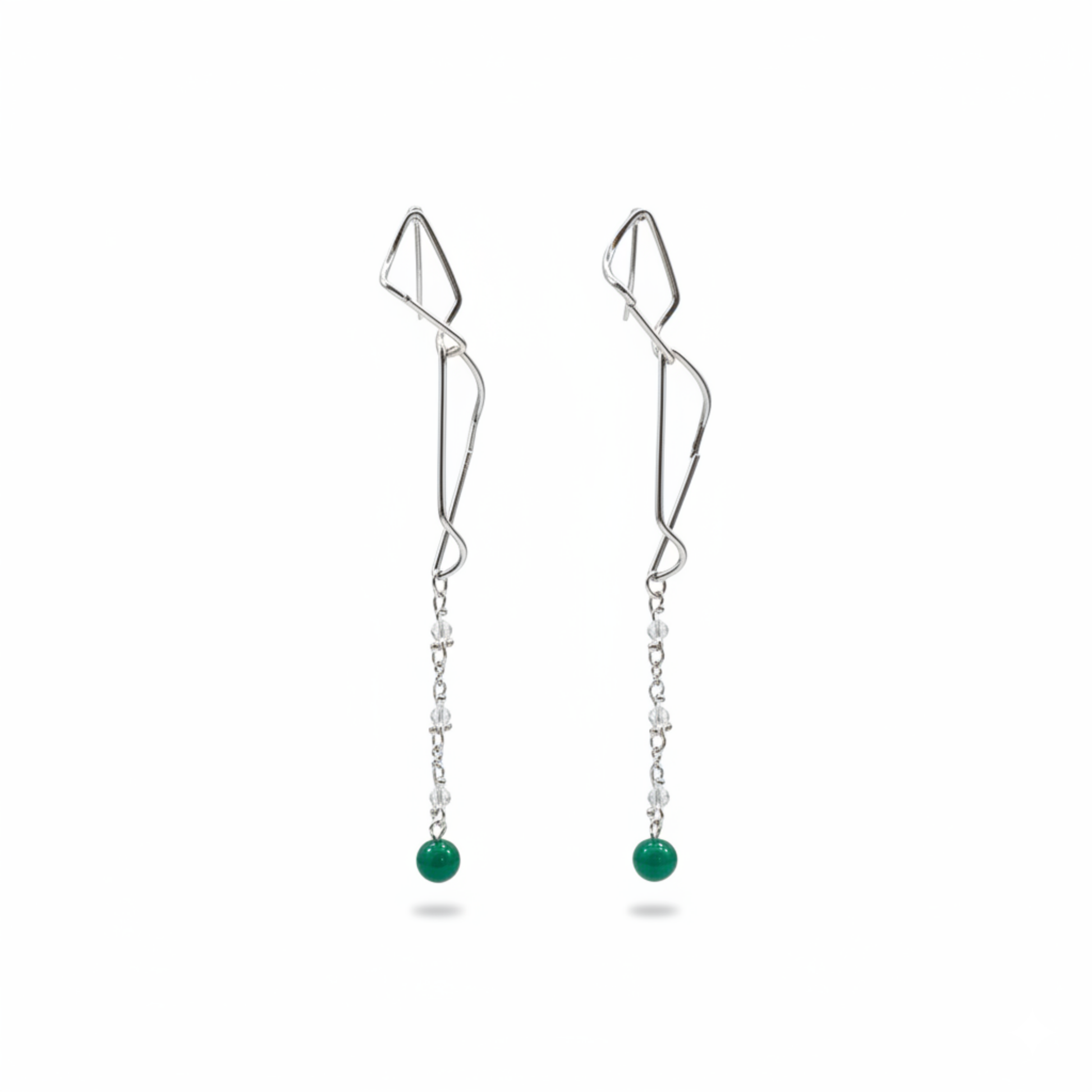先端のグリーンビーズがそっと輝くアートスウィング ピアス。