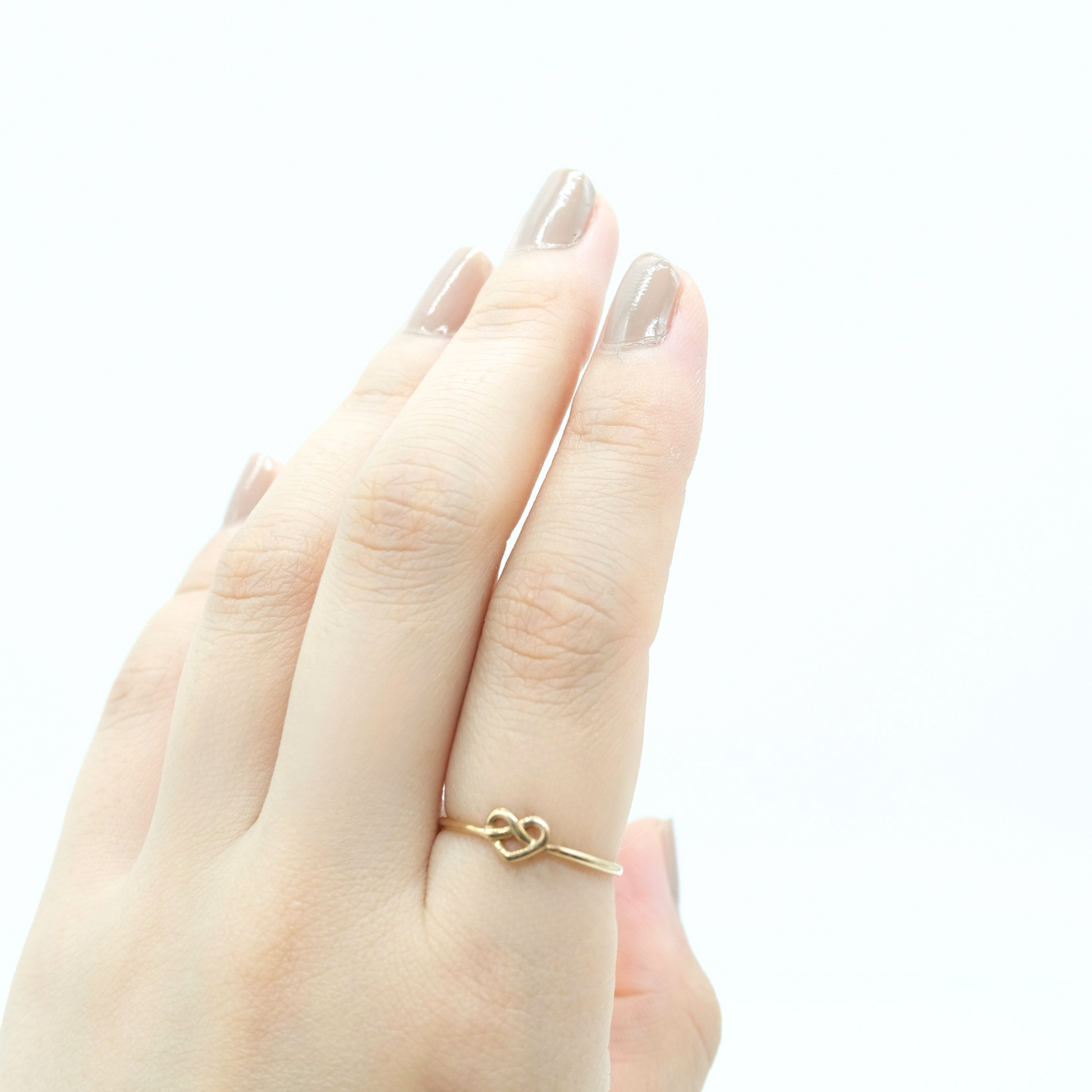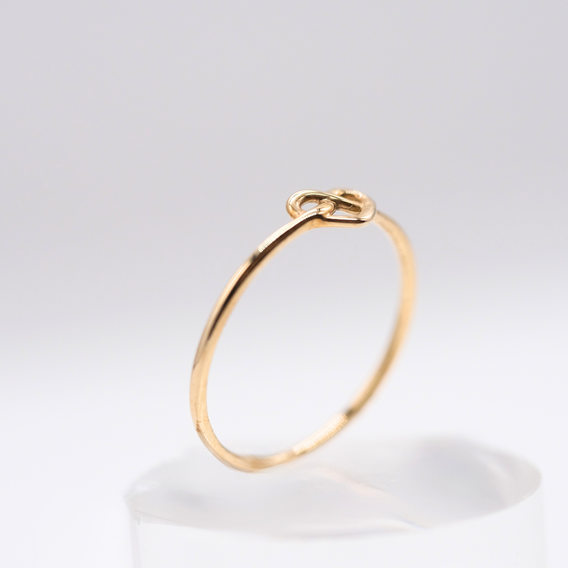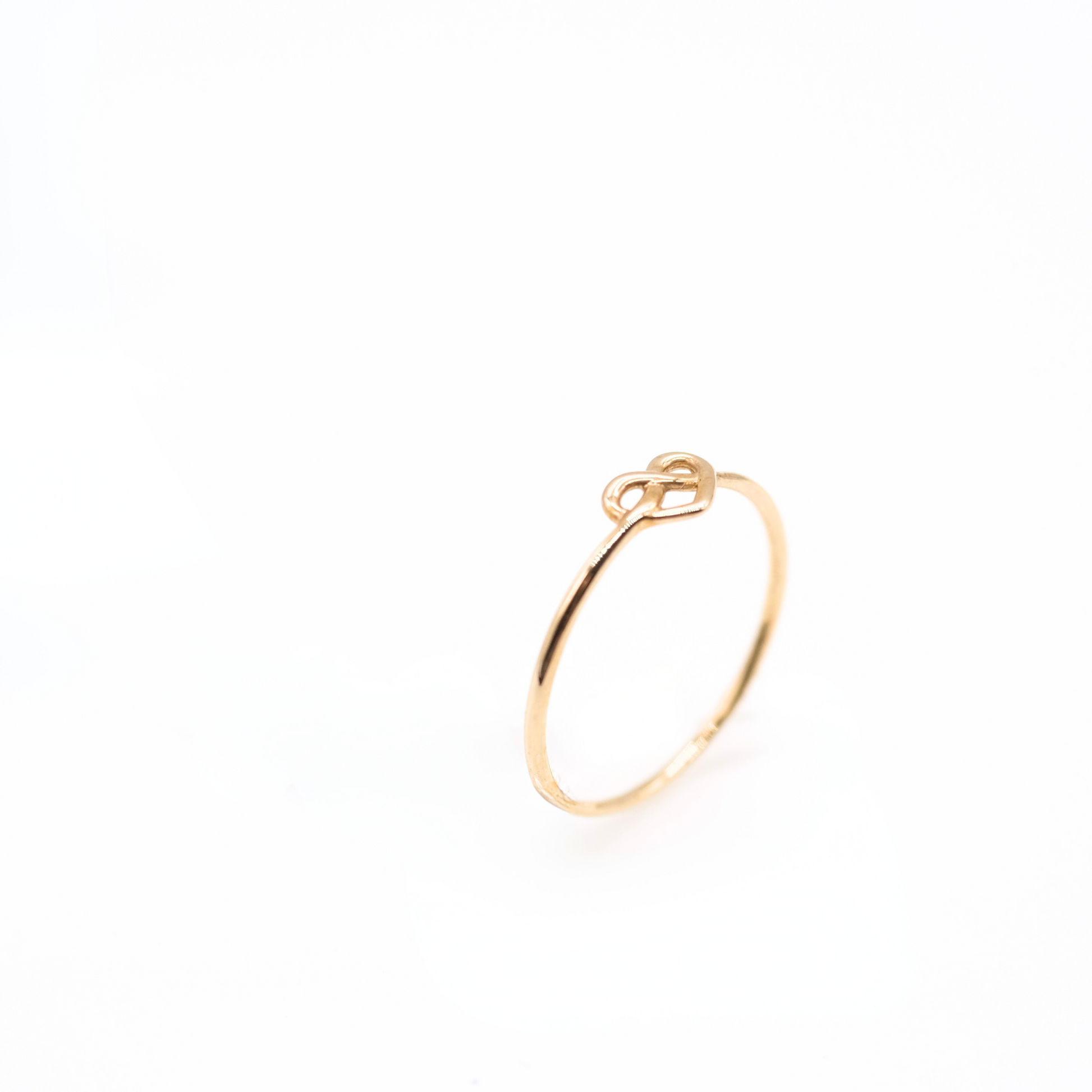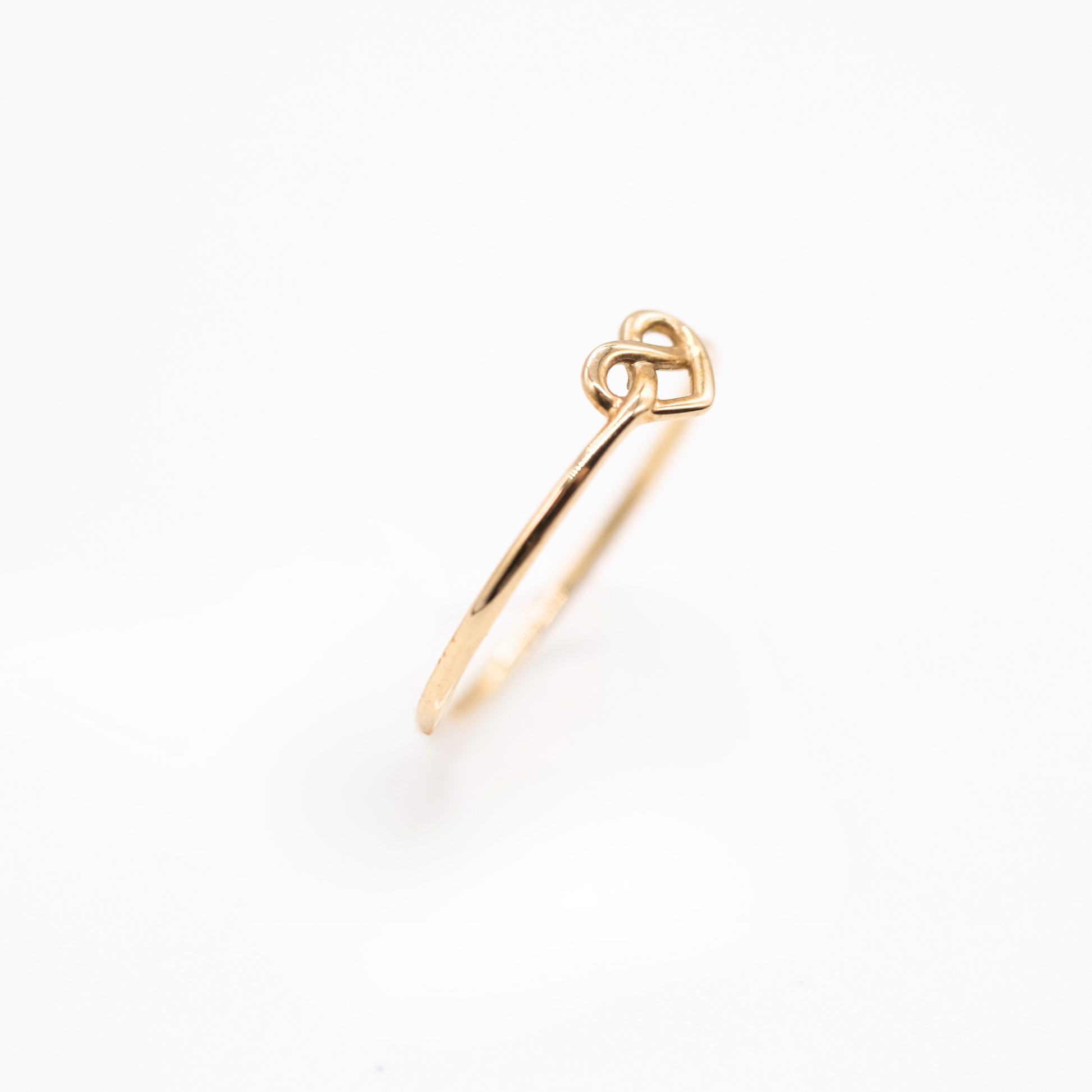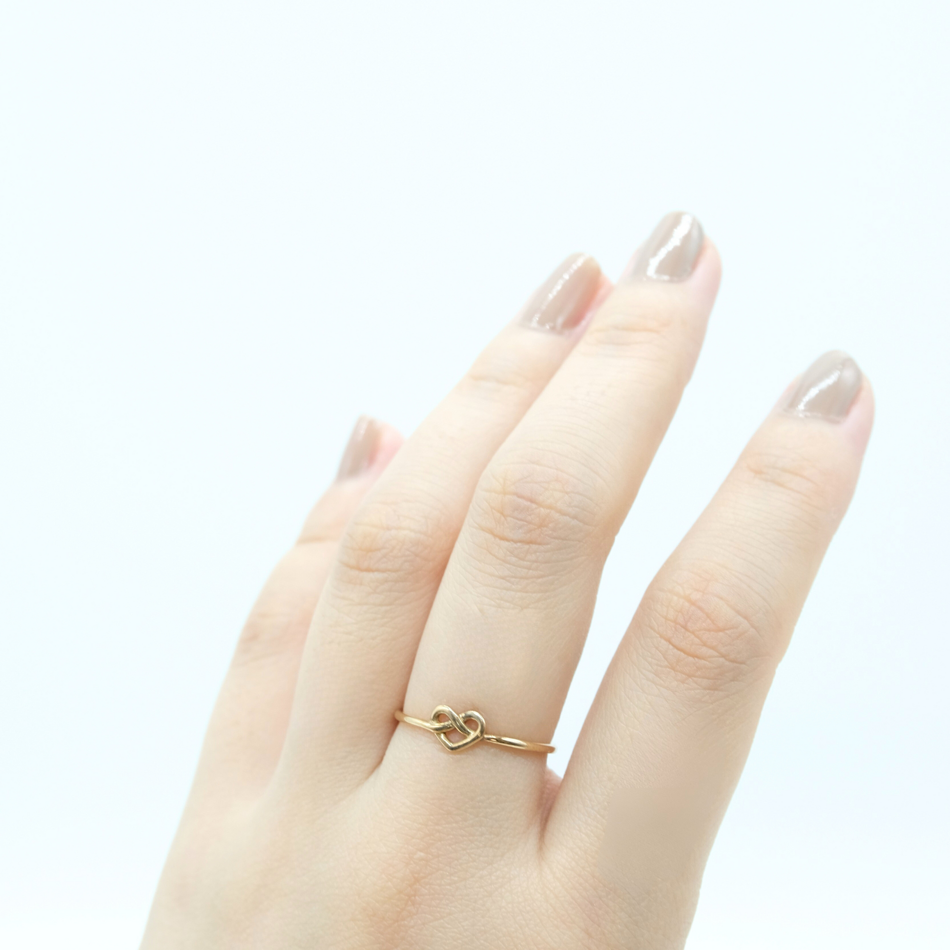 ハートのようにも見える小さなノット(結び目)をあしらった、可憐でミニマルなK10リング。