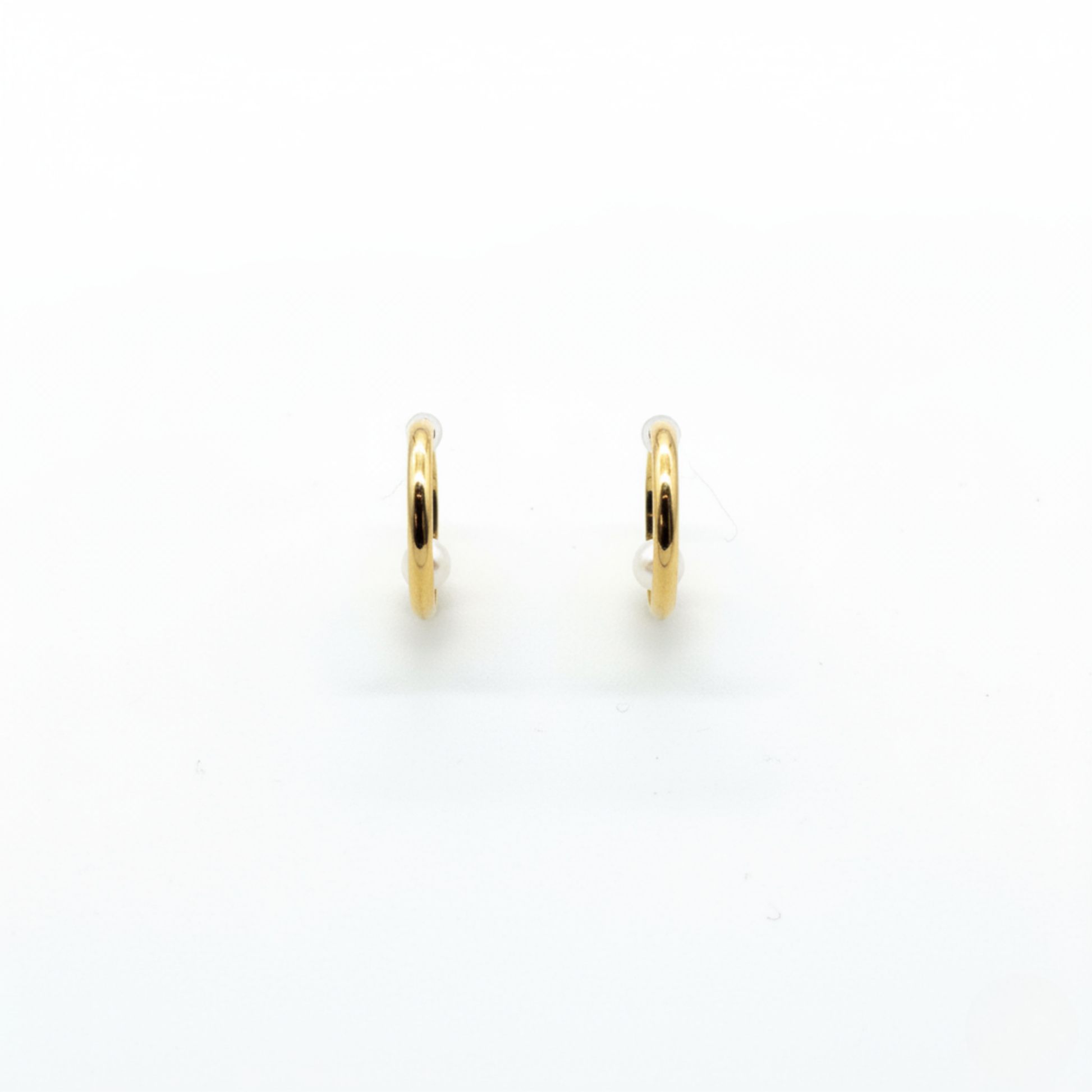 パールティップ ピアス|金属アレルギー対応チタンポスト・真鍮・小粒パール×ミニフープ
