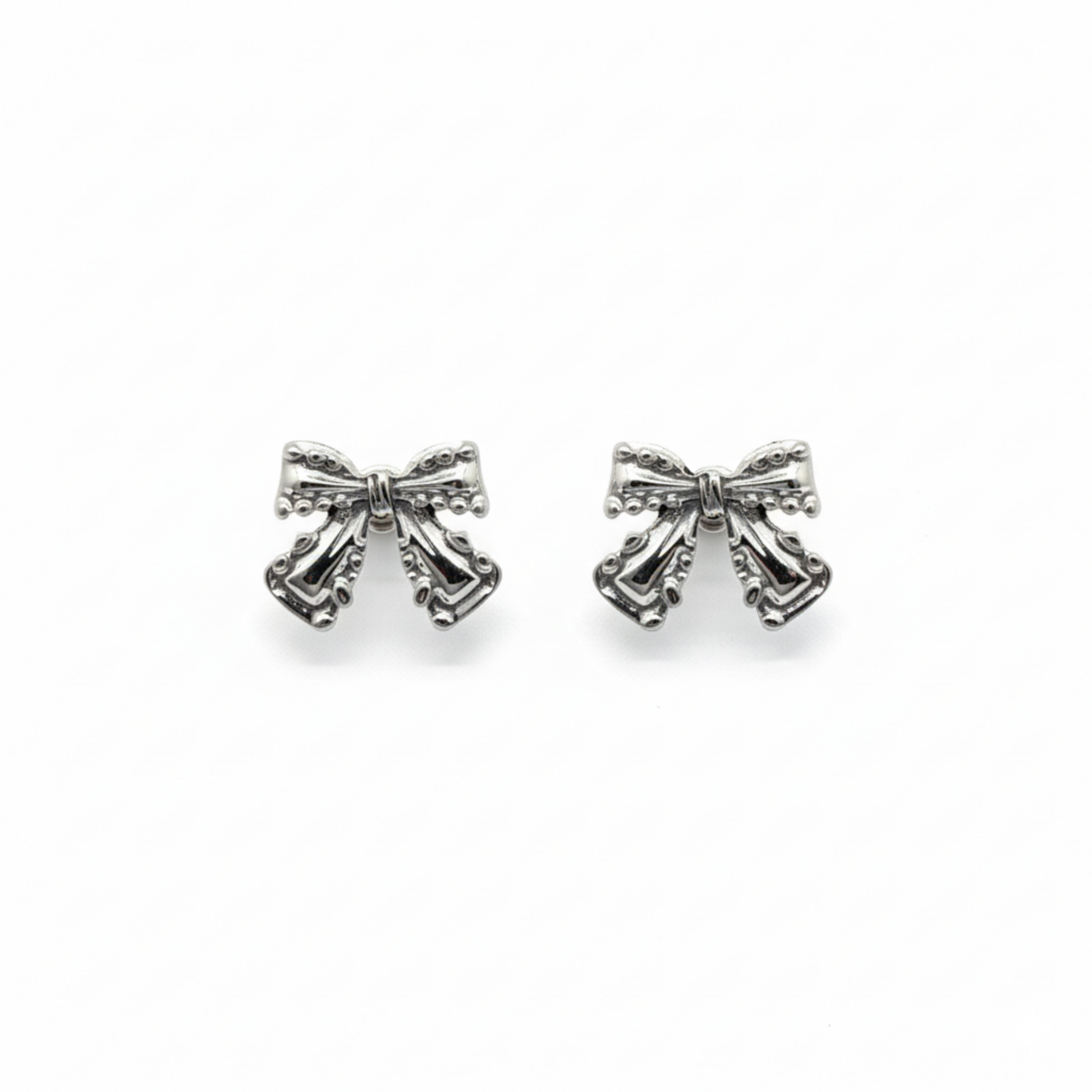 可憐なリボンモチーフに、クラシカルな装飾をほどよく散りばめたスウィートエッジ ピアス。